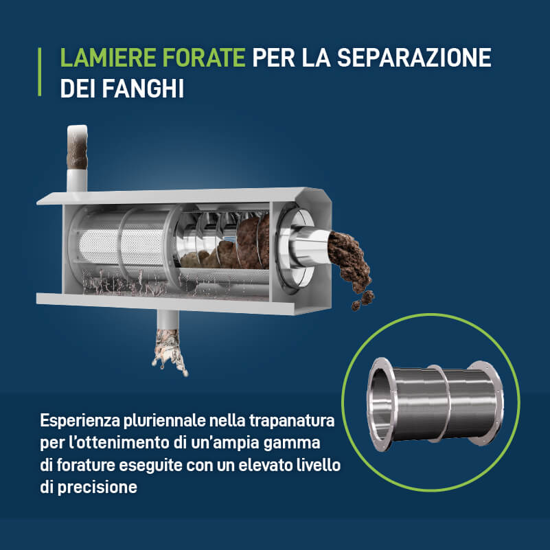 wedge wire screen e le lamiere forate impiegati in presse a coclea, rotostaccifiltri autopulenti e griglie statiche, o in altri macchinari con funzionalità analoga, possono quindi essere determinanti per l’efficienza del macchinario e per il risultato finale del processo.